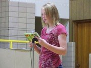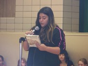 Before Llama Llama Red Pajama was read, the sixth grade students told younger students about one of their favorite books. Two girl winners and two boy winners will be selected from the book reviews given by the 6th grade students. The girl winners will cheer with the high school cheerleaders at the football game on Friday night against Oakley. The two boys winners will lead the team on to the field and be on the sideline during the game. All students did a wonderful job with their book review.