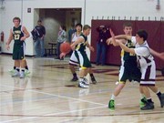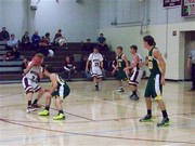 The third period opened with a nice break ending in an assist by Schiltz on a Jacob Baxter basket. Three consecutive baskets were then scored by the Wolves, all a result of Indian turnovers (41-24). The Indians then began to turn up the man-to-man defensive pressure, and it resulted in several Idalia turnovers. The Indians efficiently converted the turnovers into baskets and moved out to a 57-32 lead by the end of the third period. During the third period, several Indian reserve players made valuable contributions.