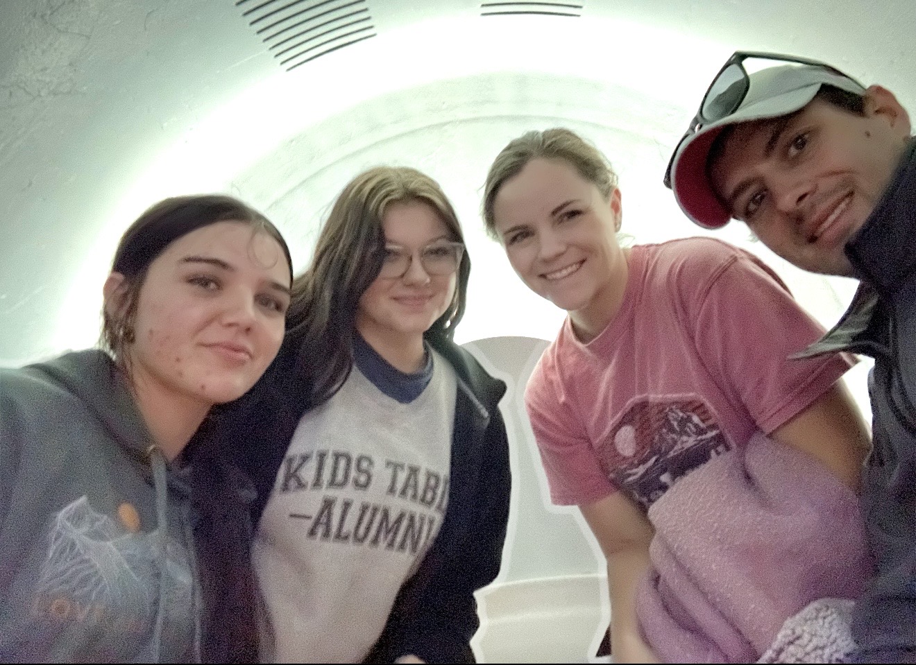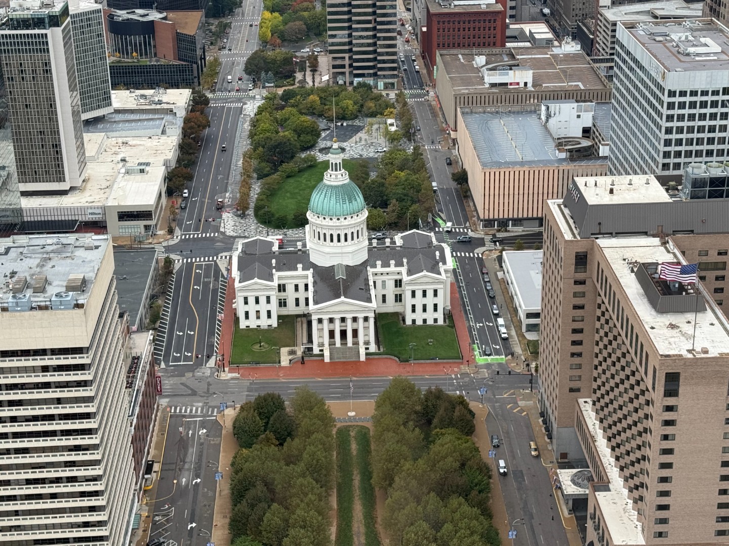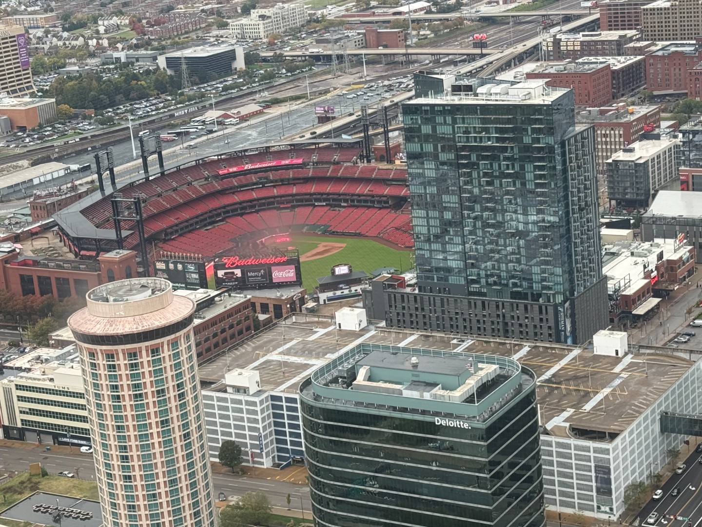 On our way to Indianapolis, we made a stop to visit the Gateway Arch in St. Louis, Missouri. There, we took the tram to the top of the Arch inside a small, uniquely designed barrel shaped capsule. When we were at the front of the line, our tour guide explained to us that five people could fit into a capsule and we divided ourselves into two groups of five and four (including Martin and Mrs. Dietz) (Picture one from left to right) Paxton Parsons, Carter Matthies, Addy Graham, Alexis Zimbelman, Presley Myers, Reagan Milne, and Ash Barnhart. The last three pictures were taken from inside the Arch.