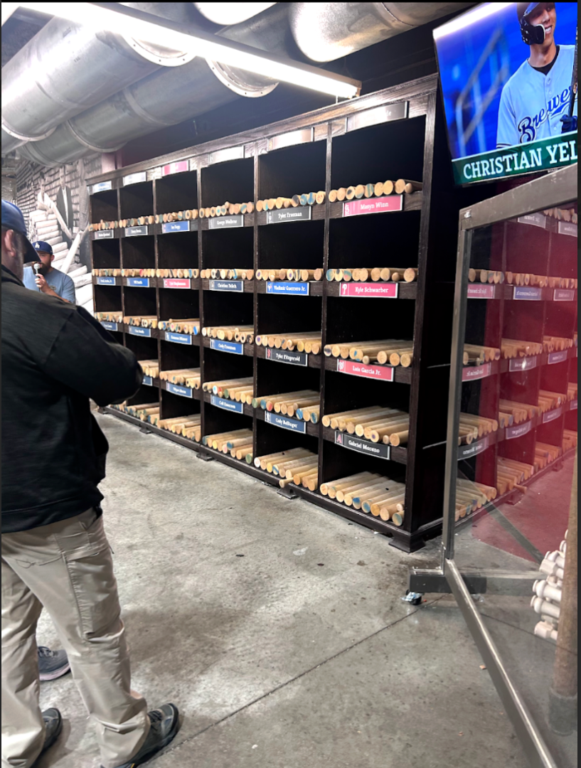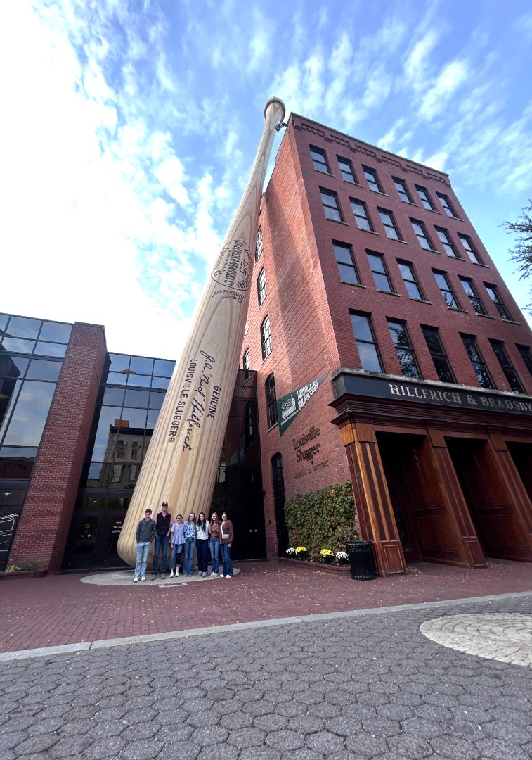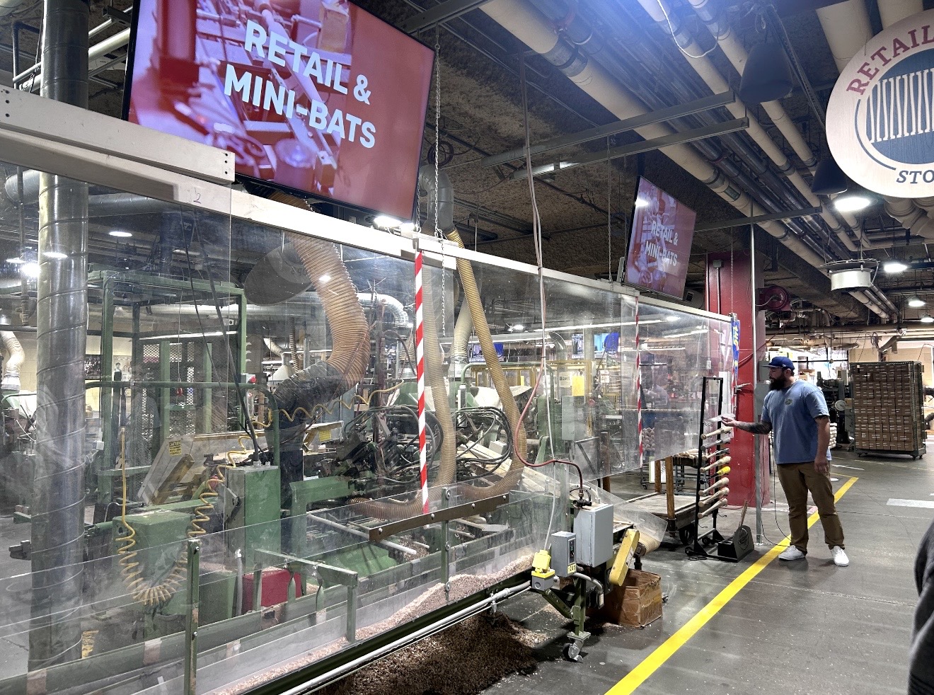 A great way to start our morning in Lousiville! We began the big tour of the museum at 10:30. We learned about the bat-making and the branding process, the bat vault with bats from famous players, and the history of the bats. Our tour guide took us through the factory and explained the different types of wood used to make bats over time and the different machines used. Sluggar bats are made from three types of wood: Birch, Ash, and Maple. At the end of the tour, they gave out small baseball bats for free.
